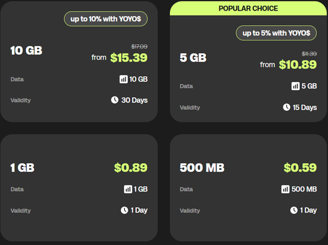 Global YO предлага eSIM услуги за пътешественици в над 200 държави, осигурявайки лесна и бърза връзка с интернет без необходимост от физическа SIM карта. Техните планове включват локални, регионални и глобални опции, подходящи за различни нужди и бюджети. Използвайте GlobalYO промокод за още по-големи намаления. Global YO се отличава със своята програма за награди YOYO$, която ви позволява да печелите точки за всяка минута, прекарана в приложението и да ги използвате за отстъпки при бъдещи покупки. Тази иновативна система прави услугите им по-достъпни.