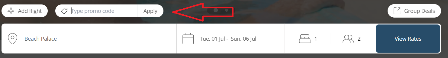 Използването на промокод в Palace Resorts е изключително лесно. Изберете хотел и дати, и просто добавете кода в полето над търсачката. След това ще ви се покажат вече намалените предложения.