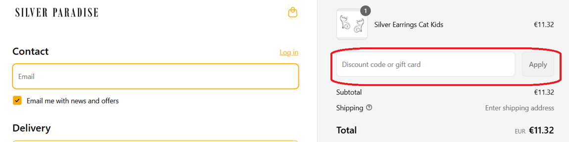 Преминете към попълмане на данните ви за доставка и плащане. Там, под избраните от вас продукти ще видите полето, в което трябва да въведете копирания по-рано код. Кликнете на „Apply“ и системата автоматично ще отчете отстъпката ви.