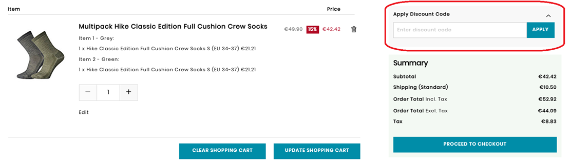Над сумата за плащане ще видите поле „Apply Discount Code“, в което трябва да въведете копирания по-рано код. Кликнете на „Apply“ и системата автоматично ще отчете отстъпката ви.